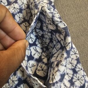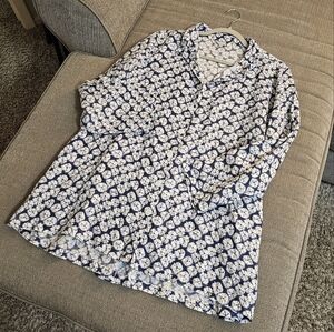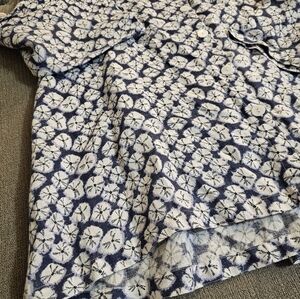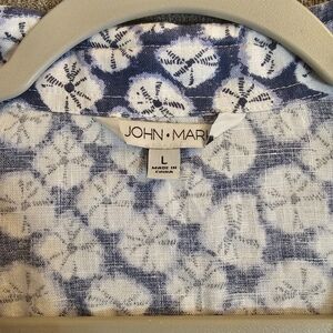 John Mark Linen Blue White Lagen Casual Coastal Button Tunic Large with Pockets