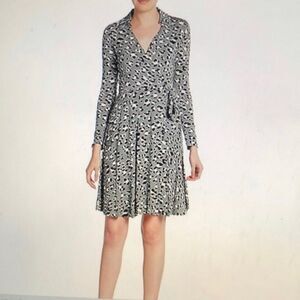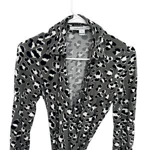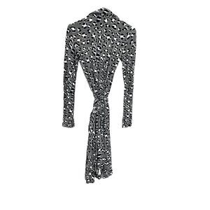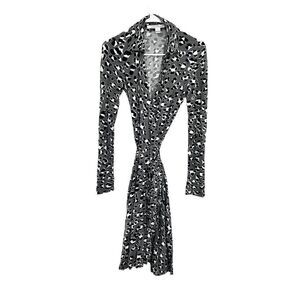 Diane von Furstenberg Leopard Long Sleeve V Neck Wrap Dress Sz 2