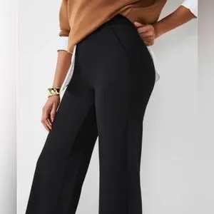 Built-in SPANX CoreSure™ Tech for smoothing and compression Premium ponte fabric with 4-way stretch enhances curves and moves with you Wide leg provides a leg-lengthening look and a roomier feel throughout Hip-flattering and leg-lengthening Pull-on (no zippers or buttons in sight) Pocket-free = bulk-free