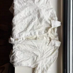 Gelato Linen Shirt. White. Good used condition. Minor discoloration on neck and collar and two small spots on the back (pictured, might come out with backing soda)