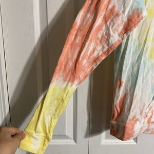 Cotton pull over lightweight cotton hoodie tee shirt tie dye tee shirt style hoodie - tee shirt material. Front pouch pocket. Approximate Measurements Laying flat: pit to pit 21" - shoulder to hem 26" - sleeves 25". Preowned new condition please check all pictures.