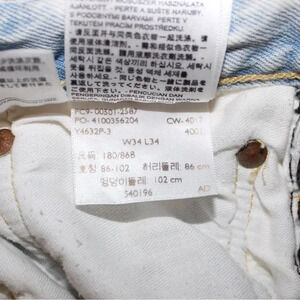 Levi’s 501 Original Fit Straight Leg Button Fly Stone Wash Denim Jeans 34x34