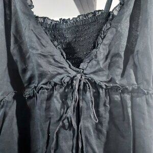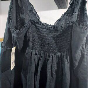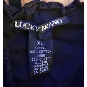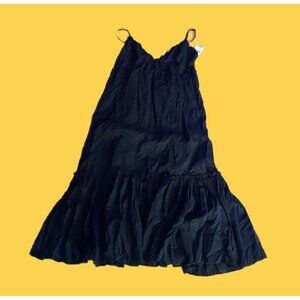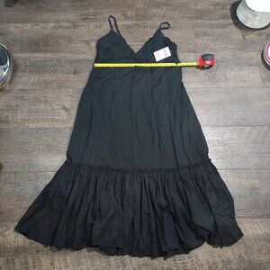 NOTE THE TAG IS NOT CORRECT. LOOK AT MEASURMENTS. Lucky Brand black v-neck sundress. Designed with a flattering ruffled detail and a sleeveless adjustable strap, this midi dress is a perfect pick for casual outings and travel adventures. Crafted from 100% cotton, ensuring both comfort and durability, and features a solid black color, peasant-style, breezy, and casual.