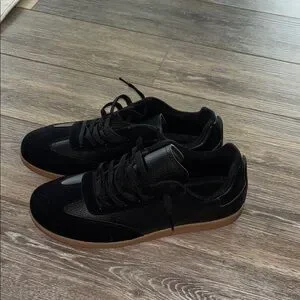 Step out in style with these sleek black men's sneakers. Perfect for any casual occasion, these shoes offer both comfort and a modern look.