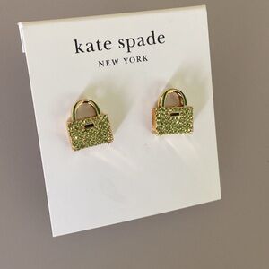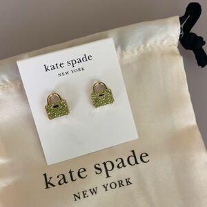 NWT Kate Spade Sweet Treasures Stud Earrings - High Polish 18Karat Gold Plating Adorned with Green Crystals