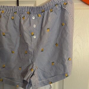 White tee with lemon graphic and striped shorts with lemon pattern. Perfect for casual wear. Cute summer Set
