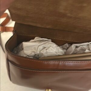 Elegant brown leather crossbody bag with intricate embroidery. Perfect for adding a touch of sophistication to any outfit.