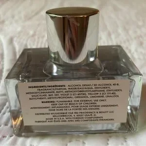 The exquisite fragrance bottle features a sleek silver base and a clear glass top, embodying a minimalist and luxurious design. Its geometric lines and sophisticated packaging make it a standout piece for any collection.