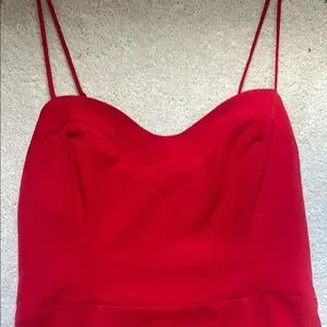 This stunning red dress features delicate spaghetti straps and a sleek silhouette, perfect for any occasion. Its vibrant color adds a bold touch to your wardrobe.