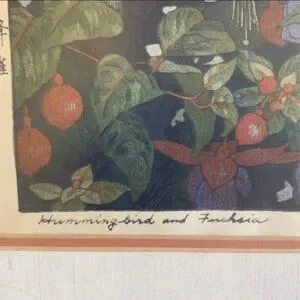 Woodblock Print of Hummingbird and Fuschia