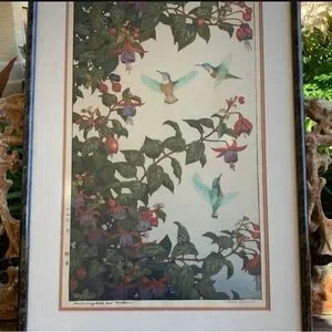 Toshi Yoshida Vintage Woodblock Framed Hummingbird Signed Art Print