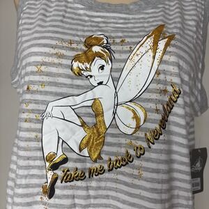 Disney Parks Tinkerbell Disney Tank Top L Striped Take me back to Neverland New
