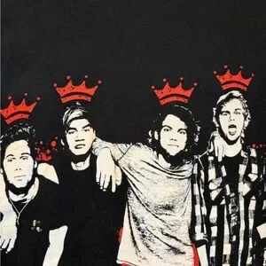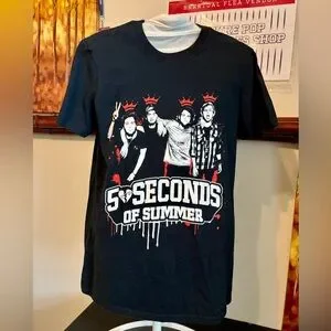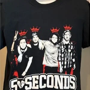 Black short sleeve tee with 5 Seconds of Summer graphic. Bold and stylish design. Perfect for casual wear.