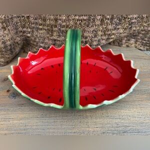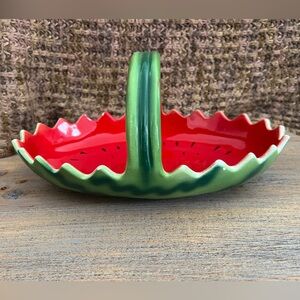 VTG Porcelain Watermelon Shaped Basket/Tray, Handpainted, Italy, Fruit Bowl. 13.5” long, 9” wide, 6” tall. Beautiful bright coloring!!