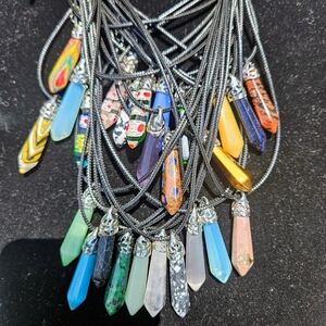 Artisan Crystal point pendant, pencil Gemstone Hexagon Pendant