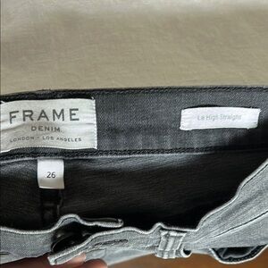 Frame Denim jeans in faded black, “muddyrips” color. Excellent Used condition, clean/no stains, no damage. Light to medium weight denim. Waist flat across 14”, inseam 27-29”