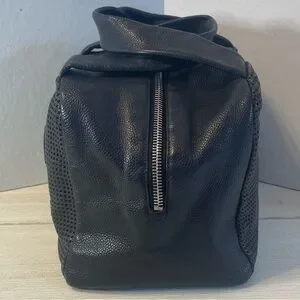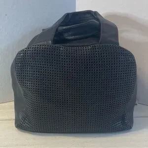 Elegant CHANEL tote in black perforated leather. Features signature logo detail.