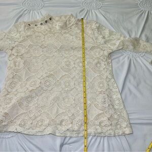 Maeve by Anthropologie Lace Mock Neck Metallic Button Accent Long Sleeve Top XL