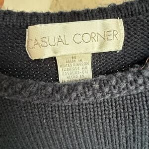 Nautical but make it vintage. This navy and cream sweater from Casual Corner brings all the retro energy with bold star graphics and stripe detailing across the body and sleeves. Made in the UK and built for cozy layering days.