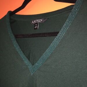 Hunter Green V-Neck Women's Top Lauren Ralph Lauren Size Medium 8/10 Woman’s