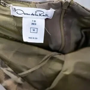 Oscar De La Renta Maxi Gown Size 14 Green Floral Silk Long Sleeve Evening Dress