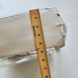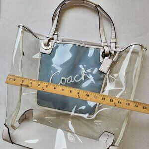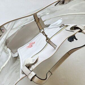 Large clear Coach tote bag with white leather shoulder handles and trim. New with tag.
