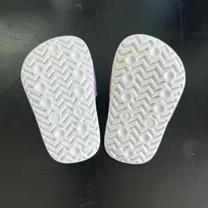 Vibrant lavender sandals with fun fruit and summer icons. Ideal for everyday adventures.