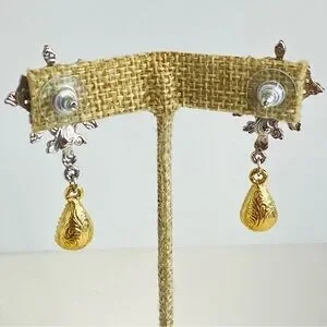 Vintage 1928 Blue Floral Drop Earrings Pink Accent Teardrop Crystal 2"