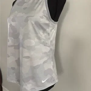Experience the perfect blend of style and comfort with this Nike fitted tank top, featuring a unique gray and white pattern. Designed with a classic crew neckline and regular armholes, this top offers a sleek and modern silhouette. Ideal for both casual wear and athletic activities, its lightweight fabric ensures breathability and ease of movement. Cared for in my Smoke Free Home!