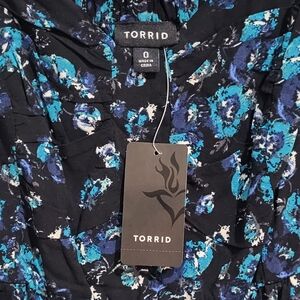 Torrid Blue and Black Floral Challis Midi Dress