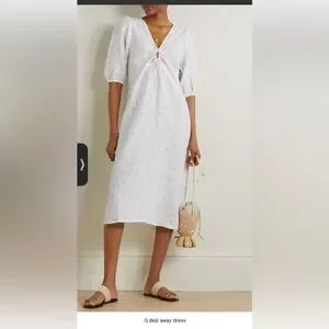 This elegant white midi dress is perfect for any occasion. Its simple yet sophisticated design offers a timeless look. Ideal for both casual and formal settings. Like new!