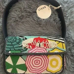 STAUD Cream and Green Shoulder Bag with Elegant Design