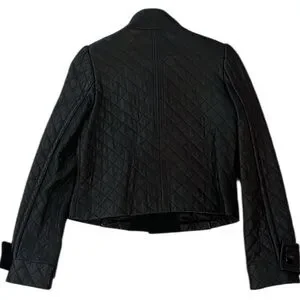 Peter Nygard Quilted Black Leather Jacket Cropped Fitted Size 6