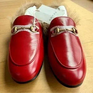 Experience the perfect blend of luxury and comfort with these Gucci loafers, crafted in vibrant red leather and accented with a chic fur trim. The flat sole and gold-tone hardware add a touch of elegance, making them ideal for any stylish occasion. These loafers are designed with a modern pointed toe, ensuring a sleek and sophisticated look.