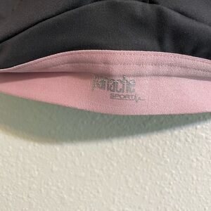 Sleek and supportive sports bra by Panache. Charcoal body with light pink accents. Ideal for active wear.