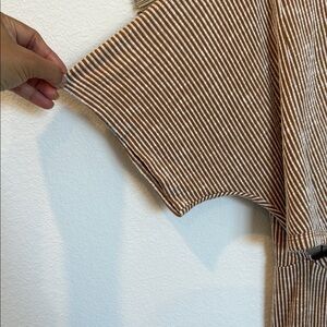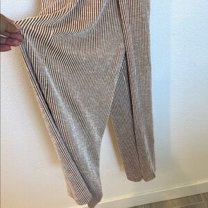 All in Favor Tan and White Jumpsuit with Elegant Stripes