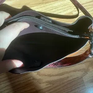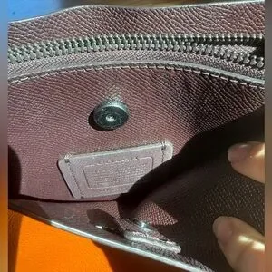 Elegant tan leather shoulder bag by Coach. Features a textured finish and adjustable strap. Used one time; almost like new!