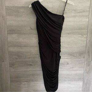 Tadashi Shoji size Small Black One Shoulder Ruched Dress in great condition, no flaws and a great quality dress!