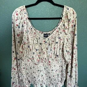 GAP silk offWhite Pleated Long Sleeve Blouse