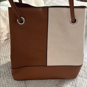 This Calvin Klein tote showcases a sophisticated blend of brown and cream tones, offering a timeless and versatile accessory for any occasion. Crafted with a structured silhouette, it features high-quality materials and a minimalist design, making it a perfect choice for both business and casual settings.