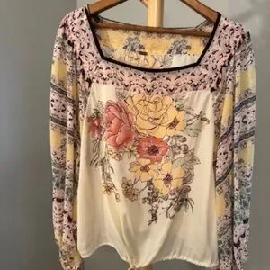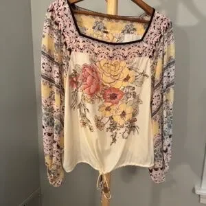 Free People floral top with tie waist, Size L