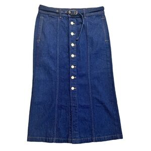ANN TAYLOR ~ Belted Dark Wash Denim Midi A-Line Skirt w/Bold Gold Hardware