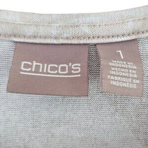 Chicos Size 1 Womens Medium Beige Floral Short Sleeve Knit Top