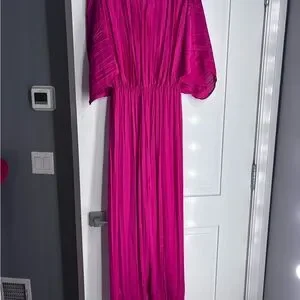 Elegant fuchsia dress with a deep neckline. Ideal for bold fashion statements.