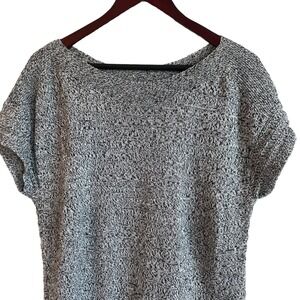 Chic black and white knit sweater. Short sleeves. Comfortable and stylish.