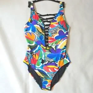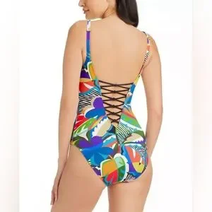 NWT! Bleu by Rod Beattie The Mix Lace Down One Piece Swimsuit