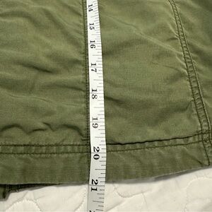 This Anthropologie utility jacket in a muted green shade features a wide notched lapel and an asymmetrical front design, offering a modern twist on a classic style. Crafted from a lightweight fabric, it provides a structured yet casual look, perfect for versatile styling. Sold Out-Online Exclusive, Previously Loved.