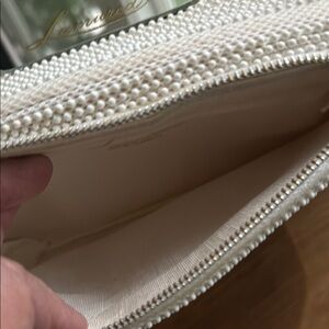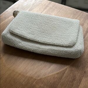 Vintage Lumured Cream Beaded Clutch Wristlet Purse Bag