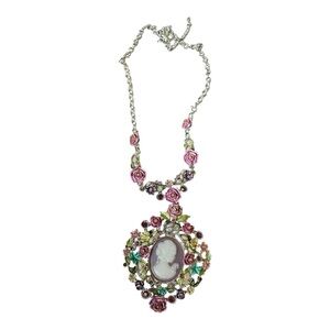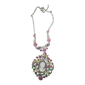 Vintage-Inspired Pink and Green Floral cameo Necklace. Stunning!