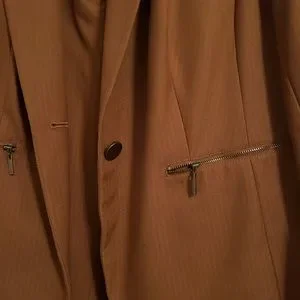 Elegant brown blazer. Tailored fit. Single-button closure. Perfect for professional settings.